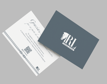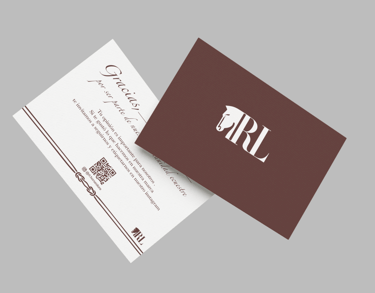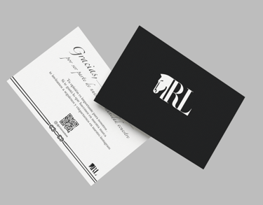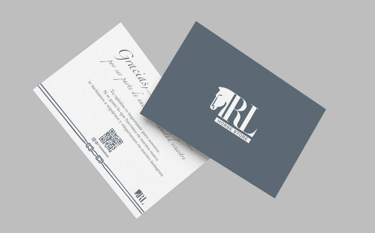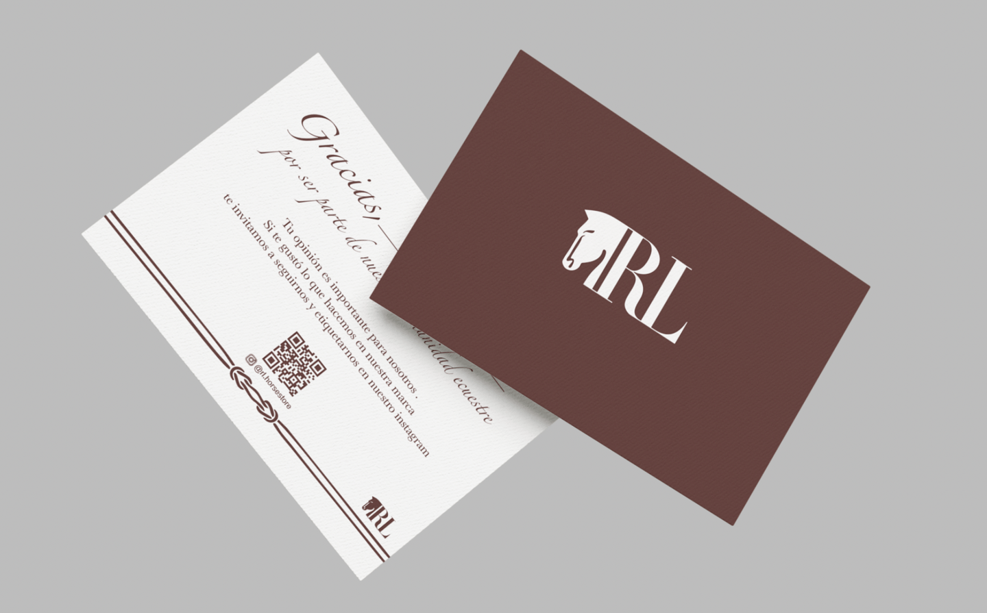 Diseñé una tarjeta de agradecimiento para RL Horse Store, marca de indumentaria ecuestre, como pieza complementaria que refuerza la identidad y el vínculo con el cliente.