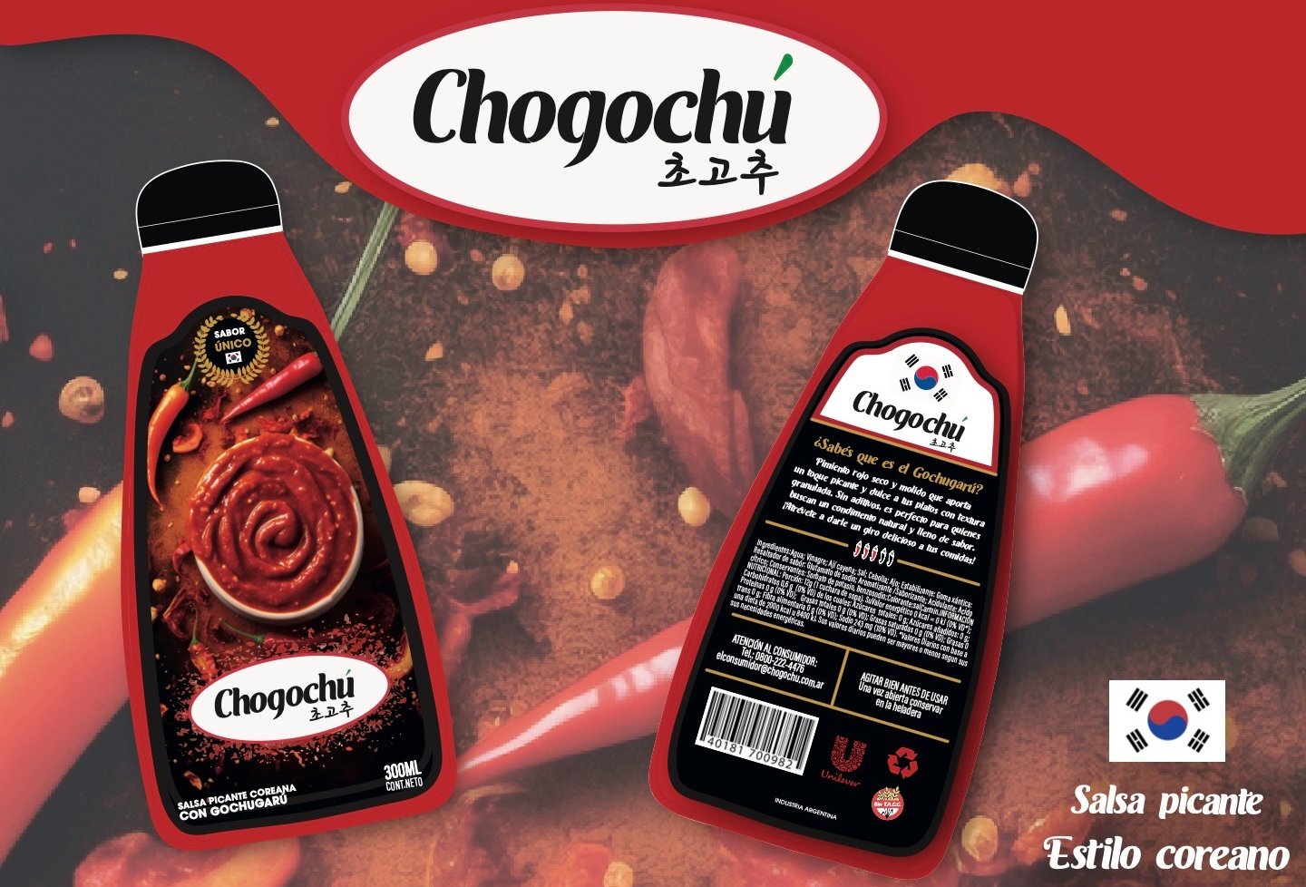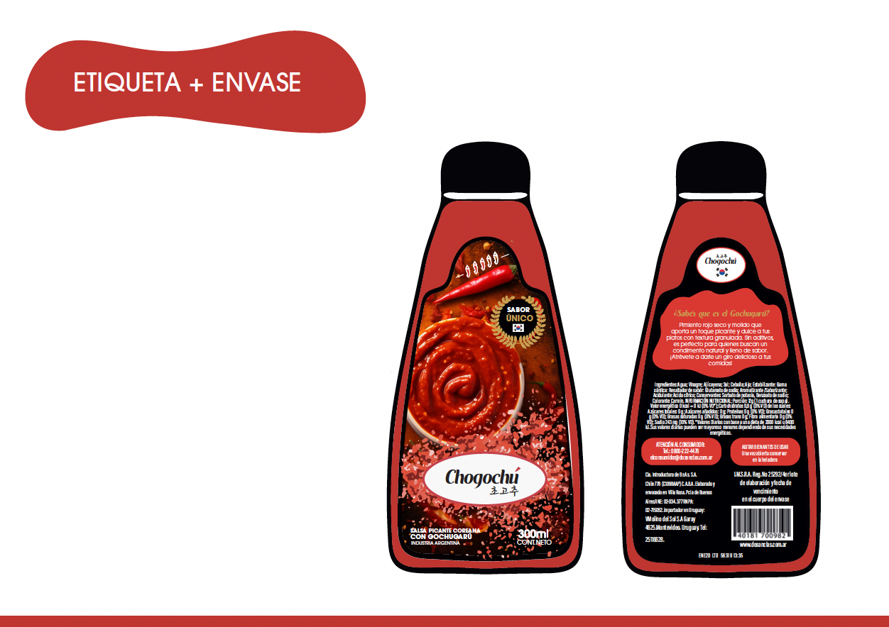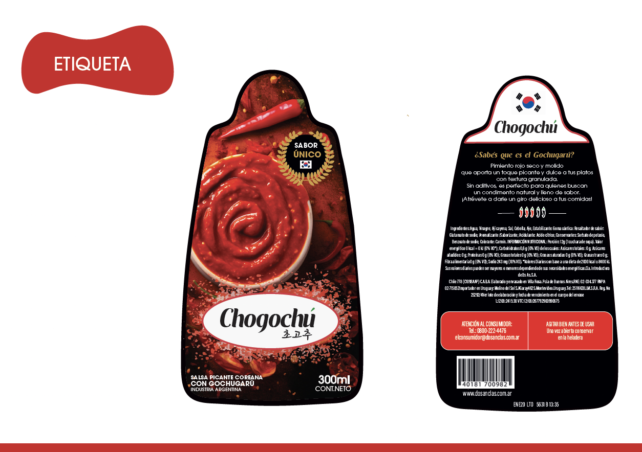 En este proyecto, desarrollé un envase y su etiqueta para una salsa picante que captura la esencia de la cocina coreana. Mi objetivo fue crear una presentación que no solo fuera atractiva, sino que también transmitiera la autenticidad, el exotismo y la calidad premium de este producto.